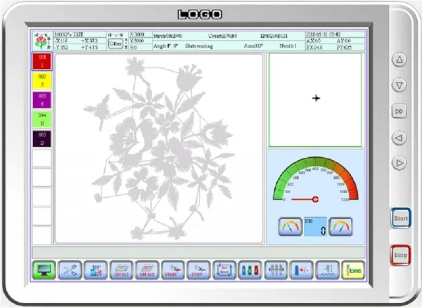 F. จอแสดงผล LCD สีแสดงการเย็บแบบเรียลไทม์